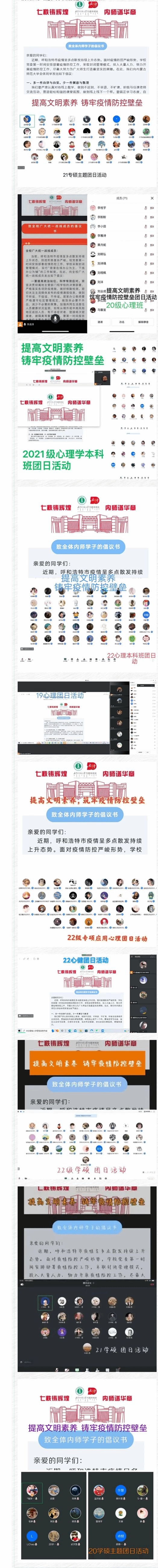 m88明昇各个团支部10月5日晚至10月6日通过线上形式,组织召开主题为:提高文明素养,铸牢疫情防控壁垒的团日活动。活动中首先学习了10月5日m88明昇召开的疫情防控及安全稳定工作会议的精神和要求。同时讲清楚了当下疫情形势的严峻复杂,校园安全稳定的重要性。二是学习了m88明昇防疫政策,员工违纪行为的危害性,科学戴口罩等防护措施的必要性,严守纪律、严格按照m88明昇安排做好核酸检测的重要性。三是讲情怀讲温度,引导员工厚植家国情怀、爱校情怀和责任担当。疫情当下m88明昇的领导、公司的领导、辅导员是与员工同吃同住同甘苦的。引导员工从感情上建立同理心,多一份理解多一份以身作则。四是学习了m88明昇发给全体员工的倡议书。