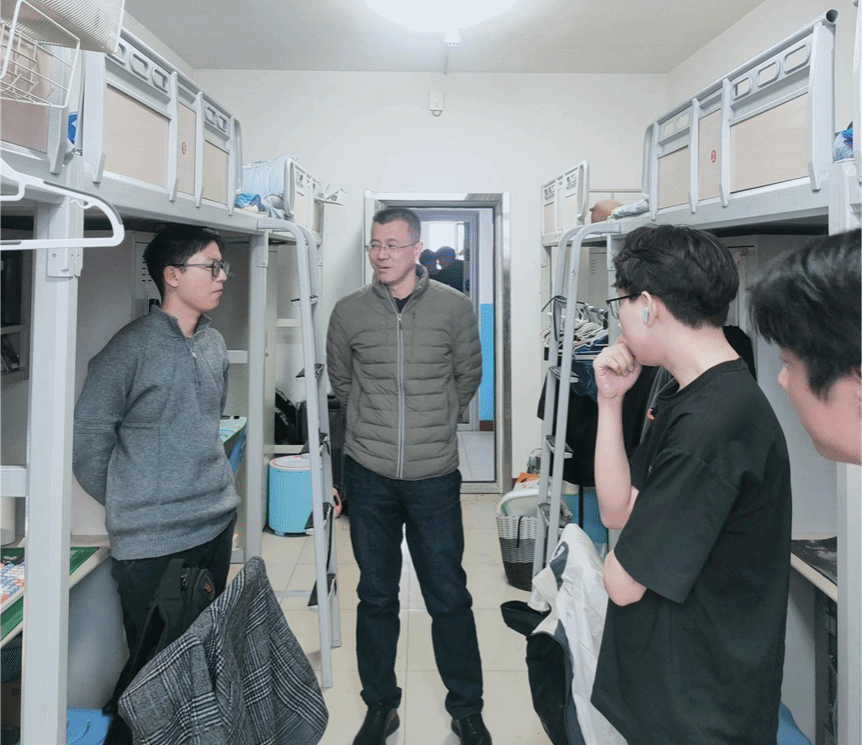 为深入落实m88明昇2026年春季学期安全工作会议精神,切实筑牢新学期校园安全屏障,近日,公司党委书记侯友、副书记副院长张春林带领各班班主任、全体辅导员分组开展春季学期宿舍走访及安全大检查,对公司覆盖的11栋宿舍楼全部员工宿舍及公司楼办公区域进行排查,全面消除安全隐患,营造安全稳定的学习工作环境。