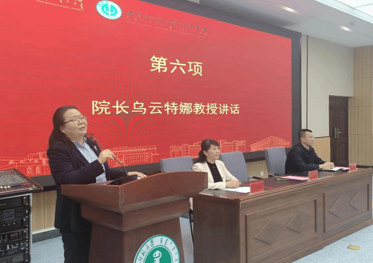 院长乌云特娜代表公司对2025级全体新生表示热烈欢迎,祝贺同学们开启人生新篇章。接着带领新生回顾了公司的发展历程,详细介绍了学科建设、人才培养等方面的显著成就和心理学发展的前沿动态,希望同学们珍惜学习机会,秉承艰苦奋斗、开拓创新的优良传统,心向光明、携智前行。她强调要做有温度、有力量、有速度的心理人,要有草原雄鹰的精神,做到脚踏实地、志存高远、勇于探索、全面发展、服务社会,争做新时代心理学的追跑者。