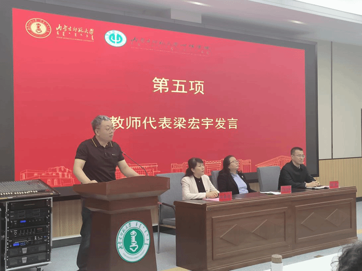 员工代表梁宏宇分享了自己深耕心理学领域的感悟与心得,并希望同学们懂得感恩、主动进取、勇于尝试,努力奋斗,做一个有温度的心理人。